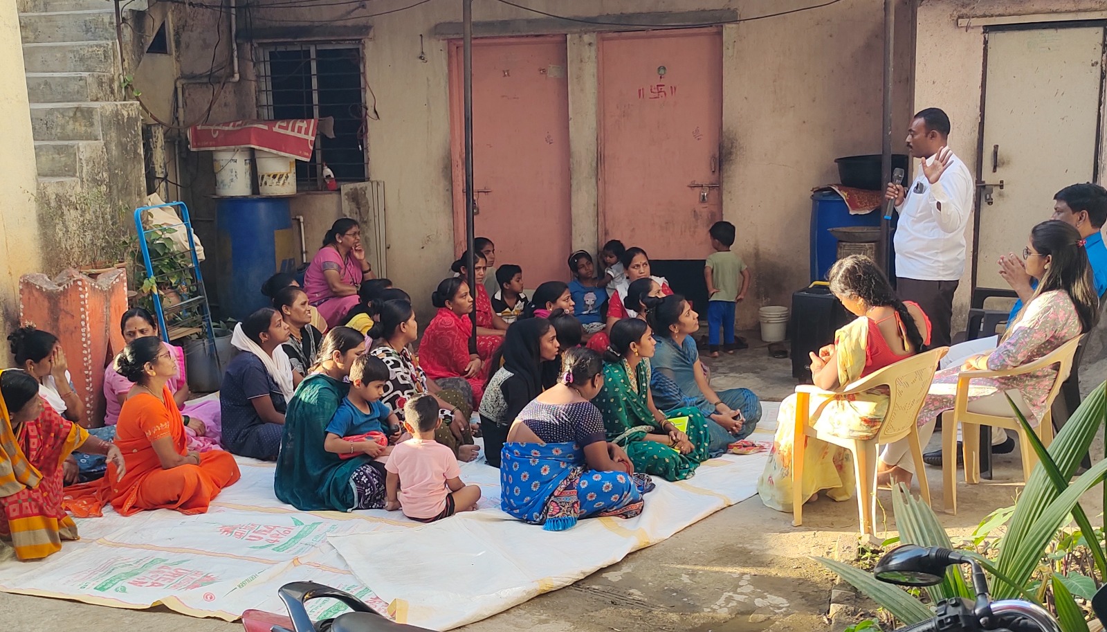To create a healthier environment and raise awareness, various initiatives are implemented at the community level. Regular programs are conducted in areas like Jagtap Nagar, Thergaon, Pavana Nagar, Dhawade Wasti, and Janata Vasahat. These programs aim to educate residents on the importance of cleanliness, proper wastewater and waste management, and both personal and public hygiene practices.